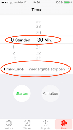 Wenn Sie die Einstellungen für den Sleeptimer so vornehmen, werden Sie nicht mehr gestört, wenn der Timer abgelaufen ist. Haben Sie Musik auf Ihrem iPhone oder iPad laufen, stoppt die Musikwiedergabe automatisch. Ihre Musik App wird dann in den Stand-by-Modus geschickt.